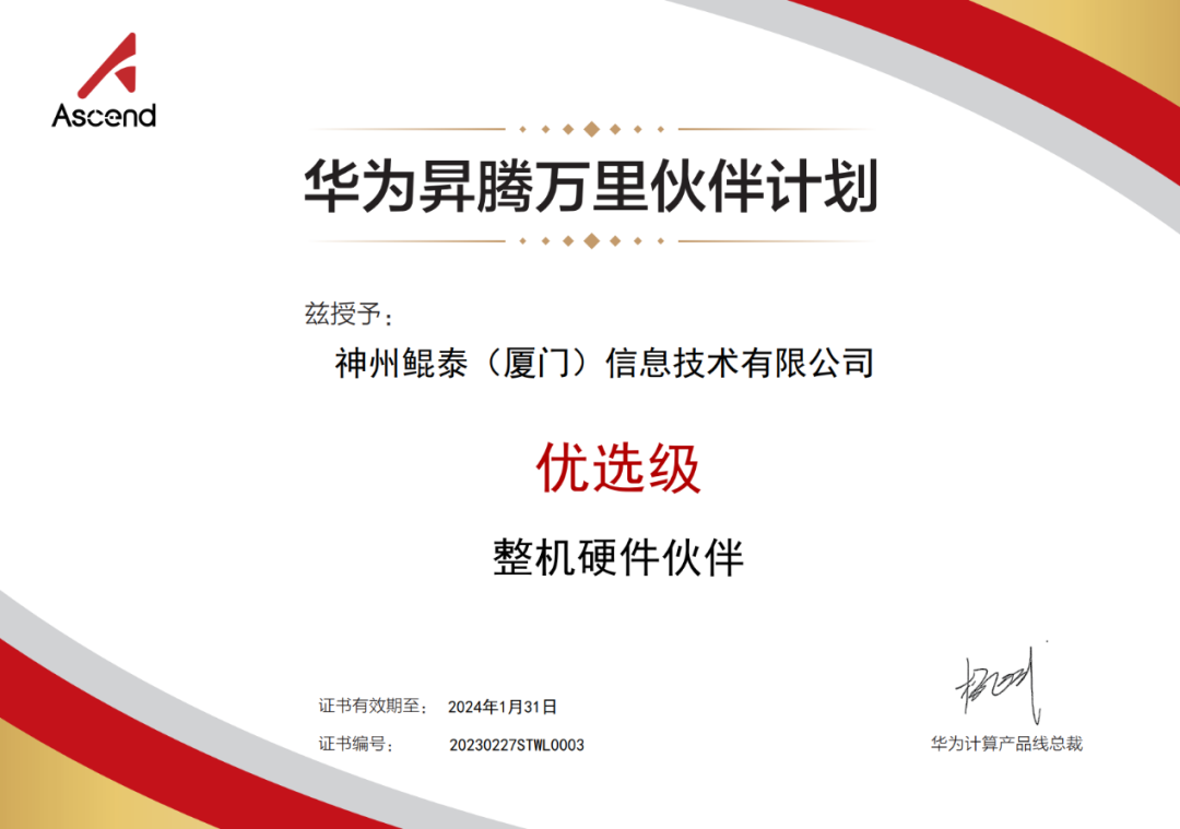 近日,九游ninegame数码旗下神州继获得华为鲲鹏领先级整机硬件伙伴认证之后,再获华为昇腾优选级整机硬件伙伴认证!这是神州与华为昇腾深化合作的硕果,也代表着九游ninegame数码信创业务在AI领域获得生态伙伴的充分认可。